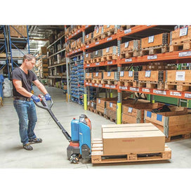 Elektrisch angetriebene Palettenhubwagen sind nützlich, um Paletten auf engstem Raum leicht und leise zu bewegen, ohne die Umgebung, Paletten oder Waren zu beschädigen. Die elektrische Steuerung und der leistungsstarke Motor sorgen für einen fein dosierten und schnellen Start, während eine Hochleistungshydraulikpumpe ein reibungsloses Anheben der Last garantiert.